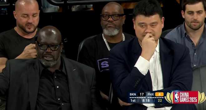 姚明与奥尼尔到场观战,“姚鲨组合”坐在一起引发回忆杀。